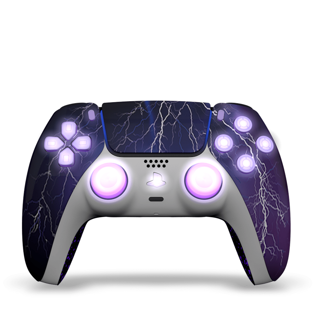 Descubre nuestro mando PS5 personalizado " Thunder/LED kit ". Todos nuestros controladores personalizados de Playstation 5 son oficiales y completamente nuevos.